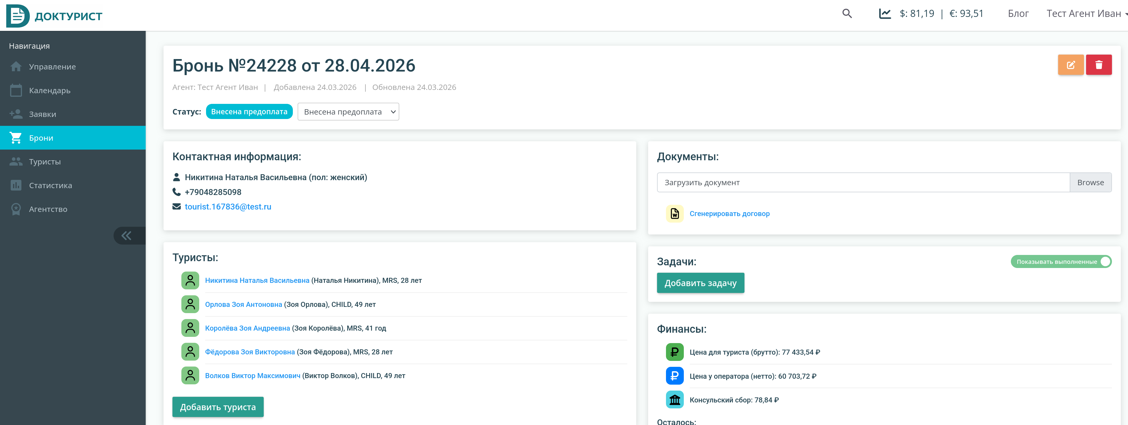 Кстати, вы можете загружать на страницу брони и другие файлы, например сканы, скриншоты, и другие документы с помощью поля "Загрузить документ". Это может быть полезно при совместной работе в агентстве.